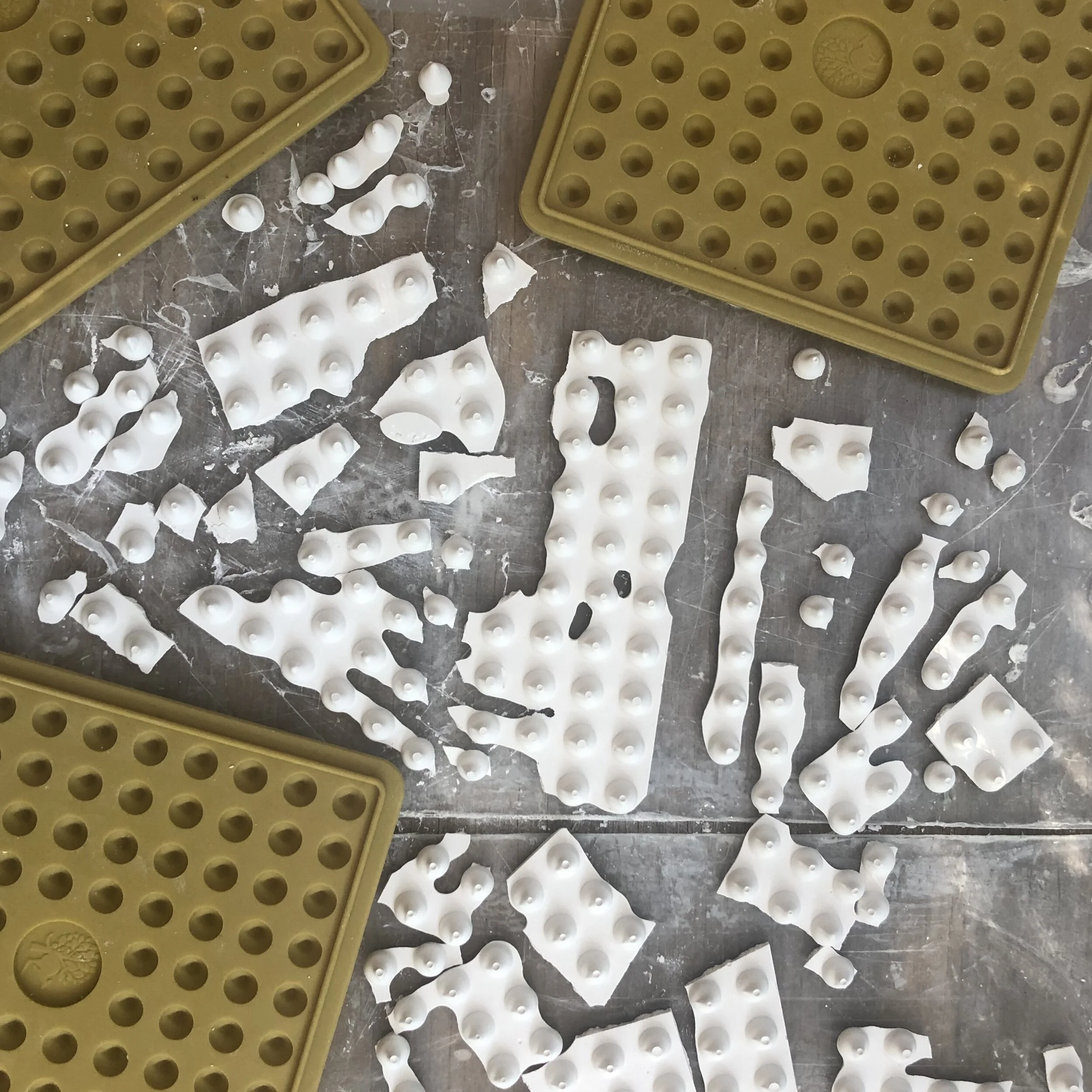 Wadding is most commonly used in salt, soda, and wood firing. It’s not usually a part of firing in an electric kiln, and I had never heard anyone in my ceramic circle talk about it. So it was a mystery to me. After some research, I decided to try two different recipes.